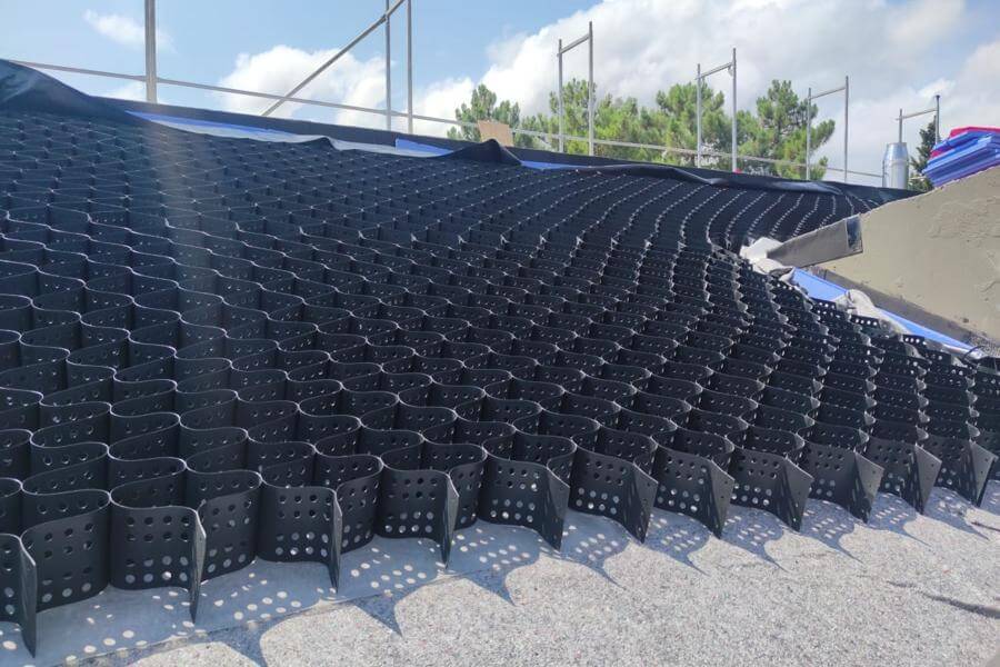 Yeşil Çatı detayını oluşturan filtrasyon geotekstili, drenaj plakaları, nem tutucu ve ayırıcı geotekstiller, kök tutucu folyo, kontrol kapakları ve mıcır ayırıcı levhalar ile projesine uygun yeşilçatı sistemleri tasarımında destek için firmamızla temasa geçebilirsiniz.