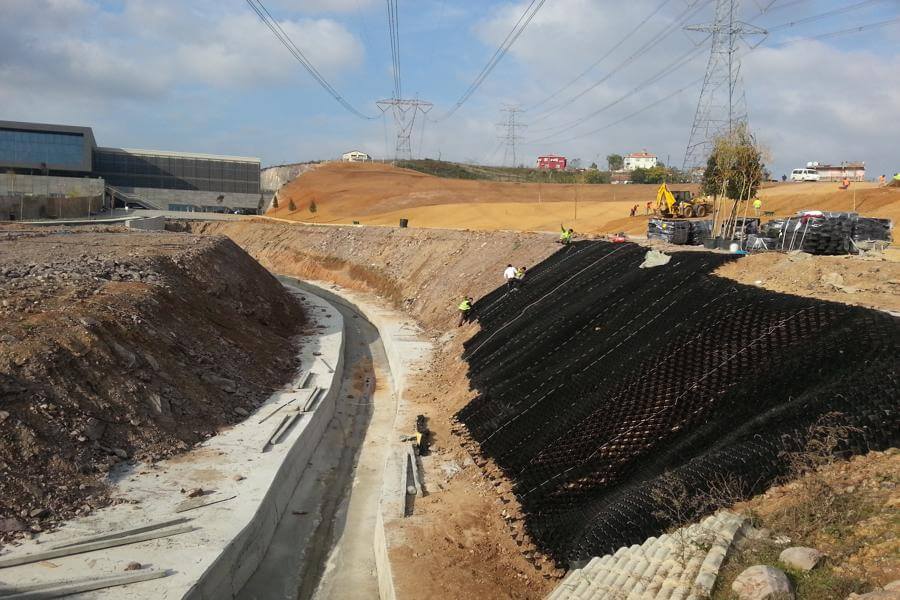 Hücresel Dolgu Sistemi (Geocell) yüksek yoğunluklu polietilen’den (HDPE) üretilir, kullanım yerine göre farklı yükseklikleri mevcuttur, malzemeler şeritler halindeyken ultrasonik kaynakla birleştirilir ve açıldığında bal peteğine benzer bir hal alır. Hücrelerin içi kullanım yerine göre farklı malzemelerle (kum, çakıl, toprak, öğütülmüş taş, beton vs.) doldurulur. Geocell Hücresel dolgu sistemlerinin başlıca kullanım yerleri yüzeysel erozyondan etkilenen eğimli yüzeylerin stabilizasyonu, temel güçlendirme, dere yatakları stabilizasyonu, çok eğimli yeşil çatılar ve istinad duvarları olarak sayılabilir.